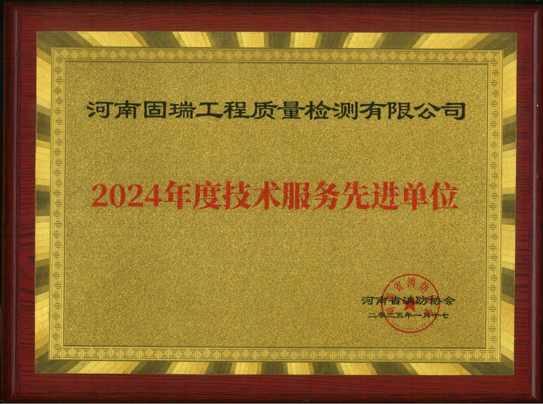 熱烈祝賀河南固瑞工程質(zhì)量檢測(cè)有限公司榮獲河南省消防協(xié)會(huì)2024年度技術(shù)服務(wù)先進(jìn)單位?。?!