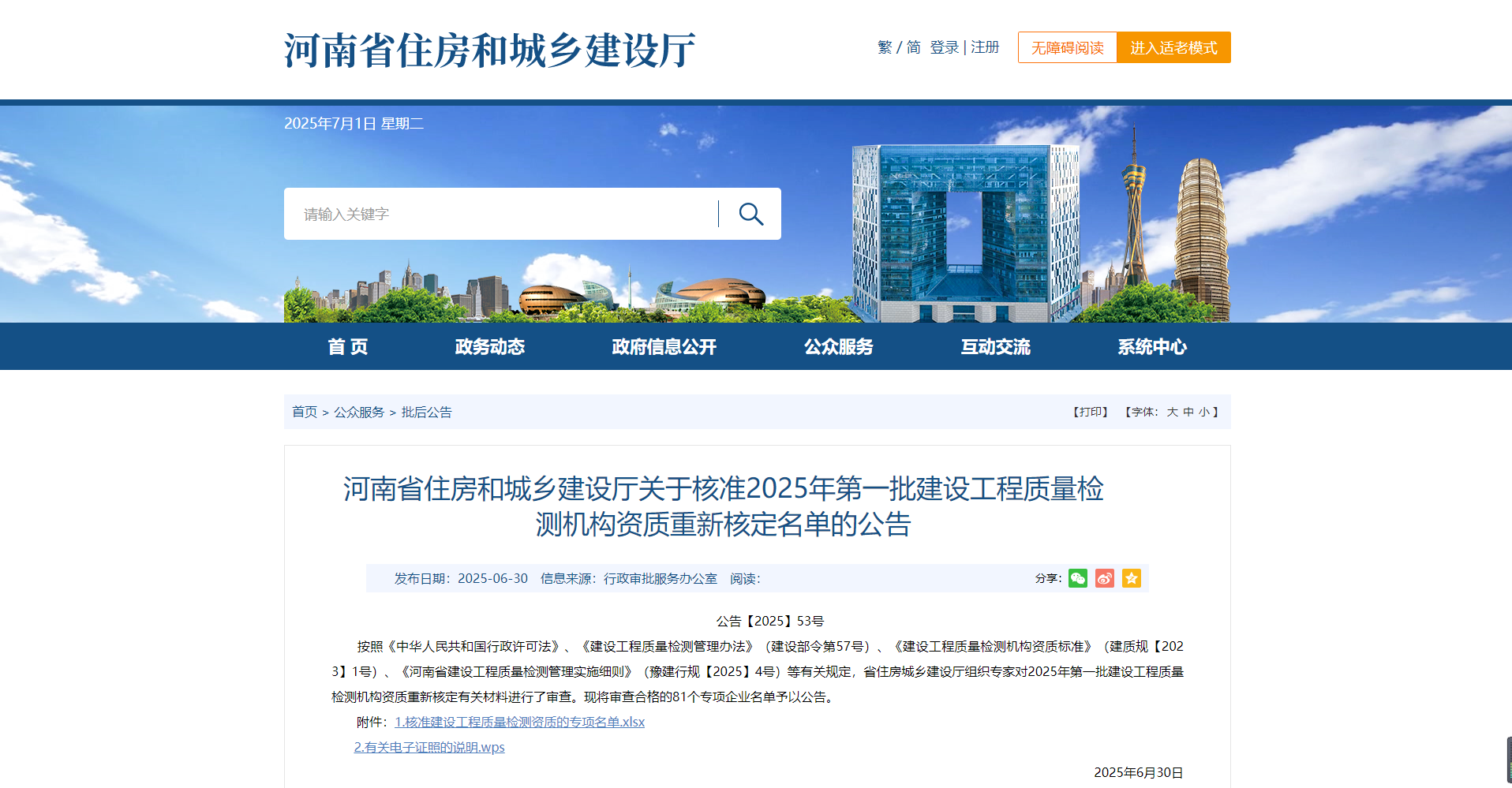 熱烈祝賀我司通過河南省住建廳2025年第一批建設(shè)工程質(zhì)量檢測(cè)機(jī)構(gòu)資質(zhì)重新核定?。?!